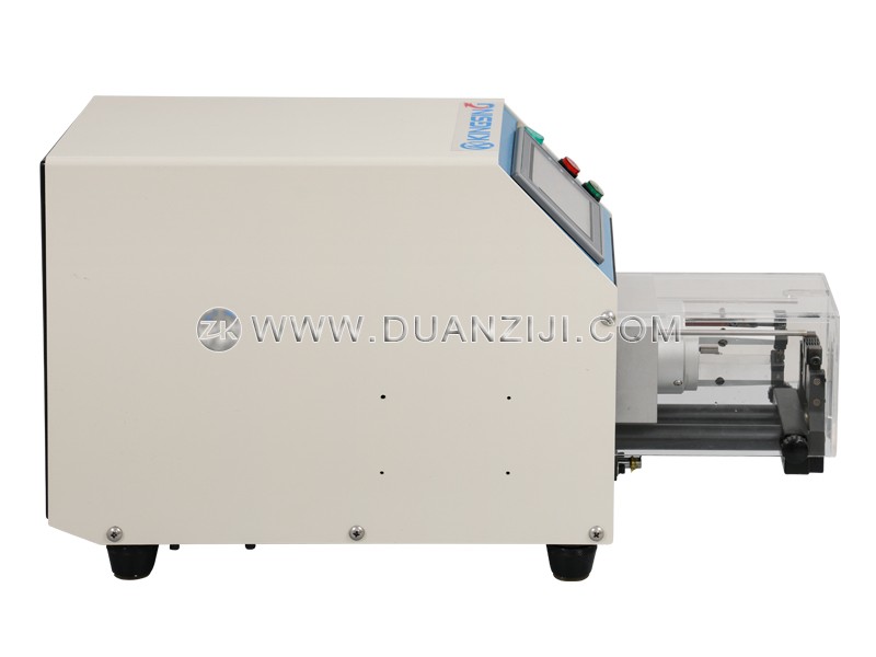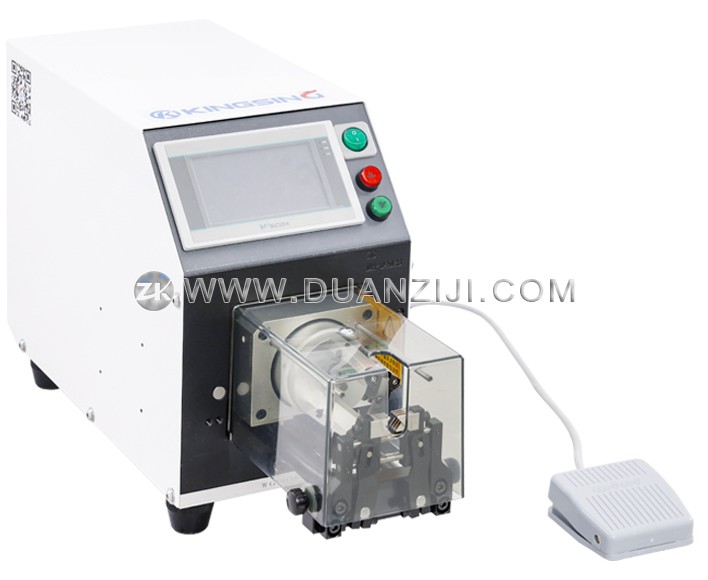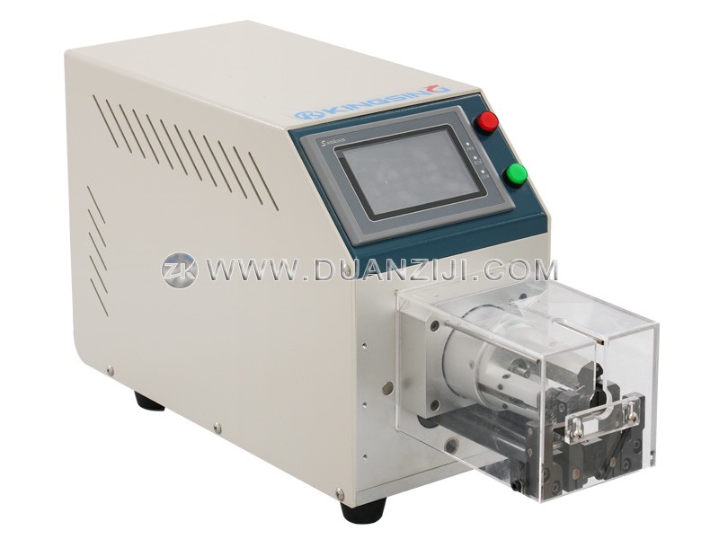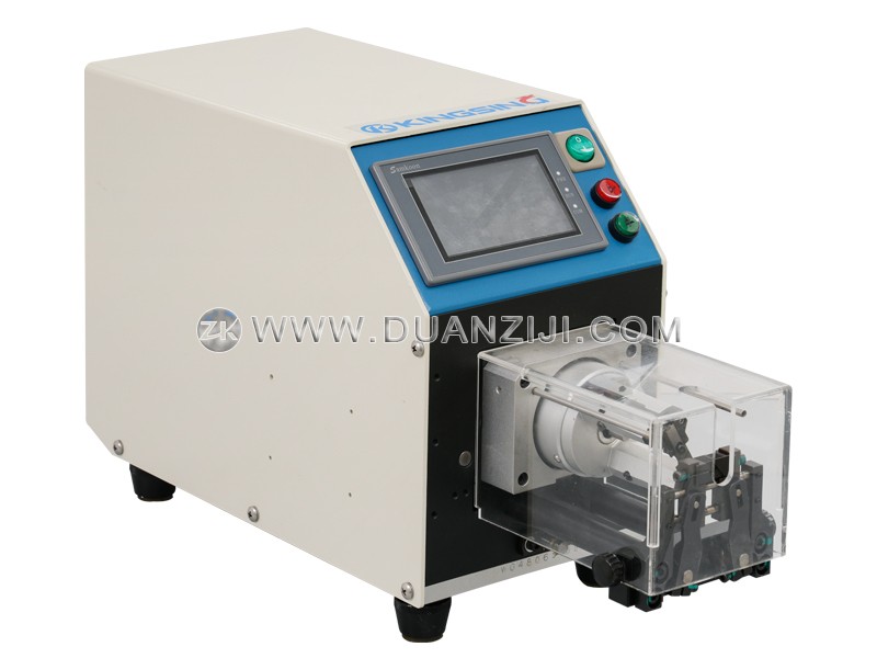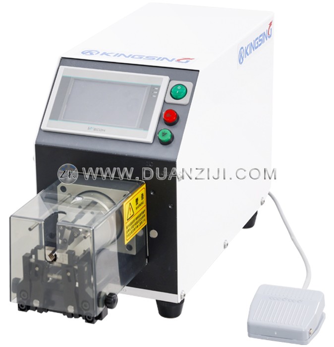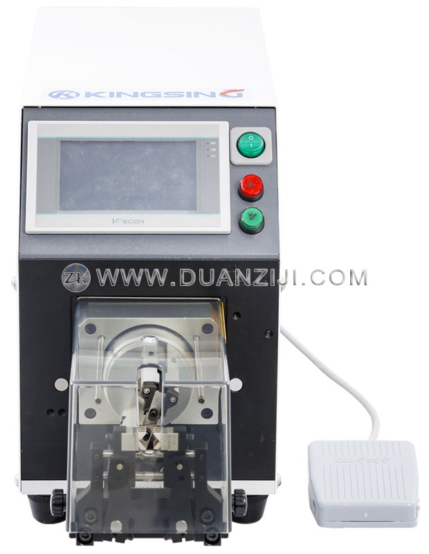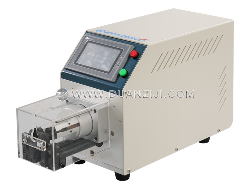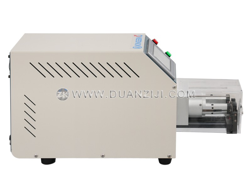 本系列为半自动同轴线剥线机,适用于加工各种柔性及半柔性同轴电缆、汽车电缆、医疗电缆等。它采用2片高精密钨钢刀旋转剥皮,可将剥皮位置360度环切,剥口平整光滑,剥皮长度精准,进刀精度可达0.01mm,不伤内层。本系列剥线机还具有旋剥功能,即在剥线皮时边旋转边剥皮,针对多股铜丝线可将铜丝扭在一起。