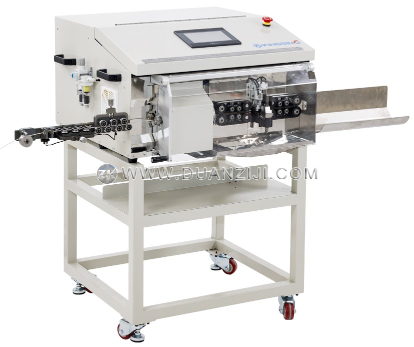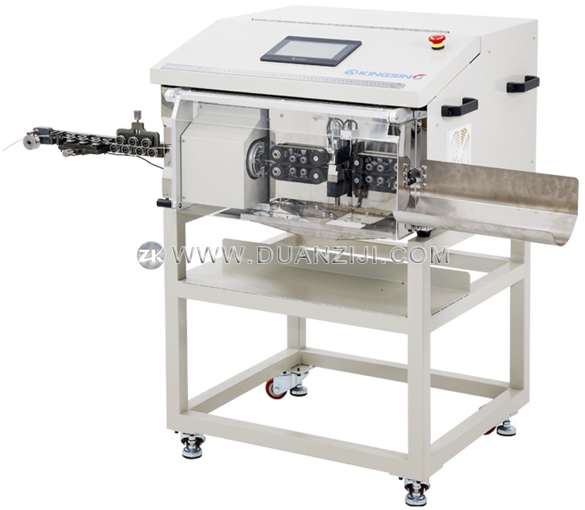 设备内部集成了三套独立的功能刀组,通过协同作业确保工艺的卓越。旋转刀机构负责在设定的剥皮位置进行360度环切,其进刀精度可达0.01mm,能够精准分层切断而不损伤内部导体或相邻屏蔽层;平刀机构专注于线材的垂直切断,确保截面平整且线身不弯曲;V型刀机构则负责各层的废料拉除,并配有自动喷气装置,可实时清理剥落的绝缘皮环,保证加工区域的整洁。