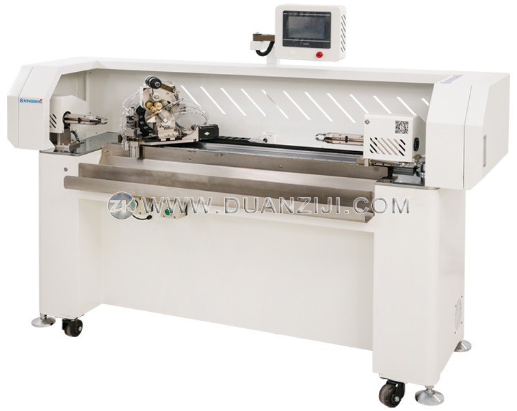 在操作便捷性方面,该设备配备液晶触摸屏(LCD Touch Screen),参数设置直观清晰。操作人员仅需设定缠带长度、数量及分段模式,系统即可自动完成进料、缠带、切断及出料全过程。对于长度较特殊的需求,支持定制更长的缠带范围(>1000mm),两端无胶带长度也可根据工艺要求优化(标准左端25mm、右端35mm,可定制缩短),满足多样化线束保护需求。
