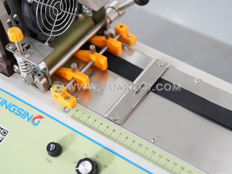 这是一款经济型热熔切带设备,专为工业环境下各类合成纤维织带、胶带、弹性带等材料的裁切与封边作业设计。设备采用热熔刀片切割原理,在切断材料的同时自动熔融封口,有效防止切口散开、脱丝或纤维松散,尤其适用于对切口质量要求较高的批量生产场景,可显著降低因切口不良导致的返工率。