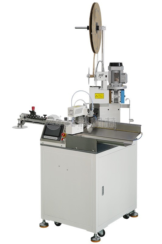 这是一台高精密单头全自动端子机,可将线材定长切断,一头剥皮扭线,另一头打端子。特殊设计的刀架结构使本机拥有加工超短线的能力,最短可以总长20mm打端子,同时也适用于加工长线,最大裁线长度可达10米。